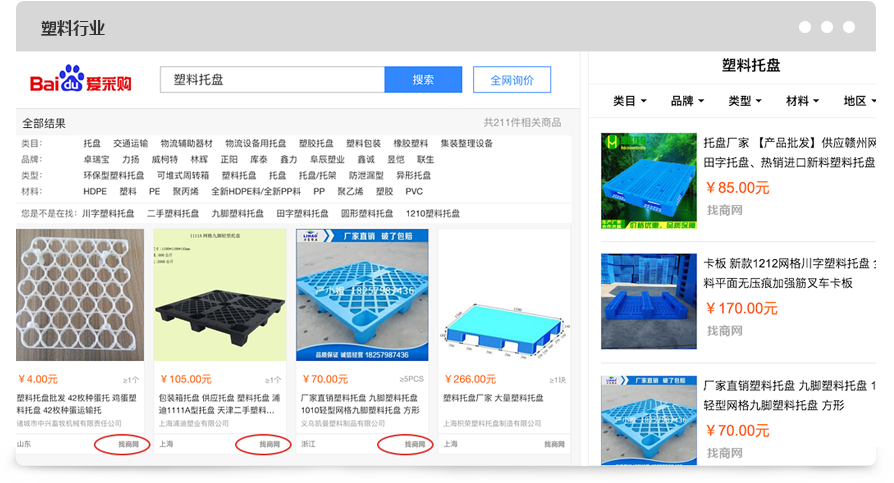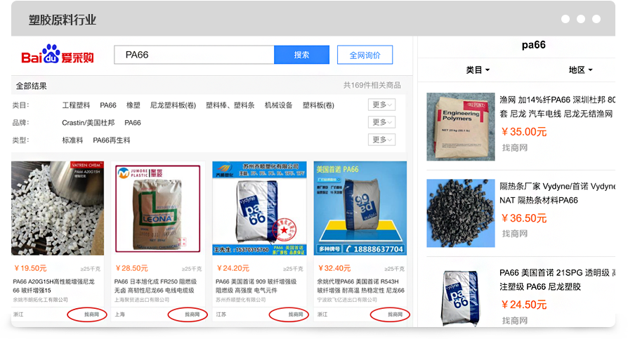 與找商網同屬于一個母公司主體的全球塑膠網(https://www.51pla.com)經百度愛采購授權,成為:寧波、金華2大城市的 指定服務商。
